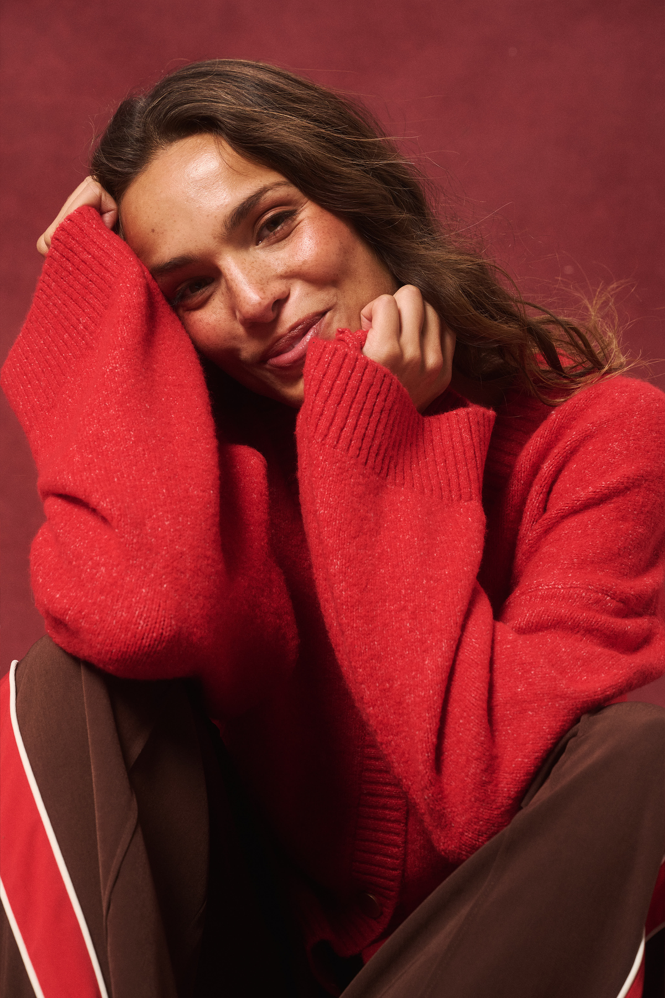 - 50% Recycled polyester, 15% polyester, 13% acrylic, 6% wool, 3% spandex knit