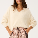 - Relaxed fit, v-neck sweater with dropped shoulders