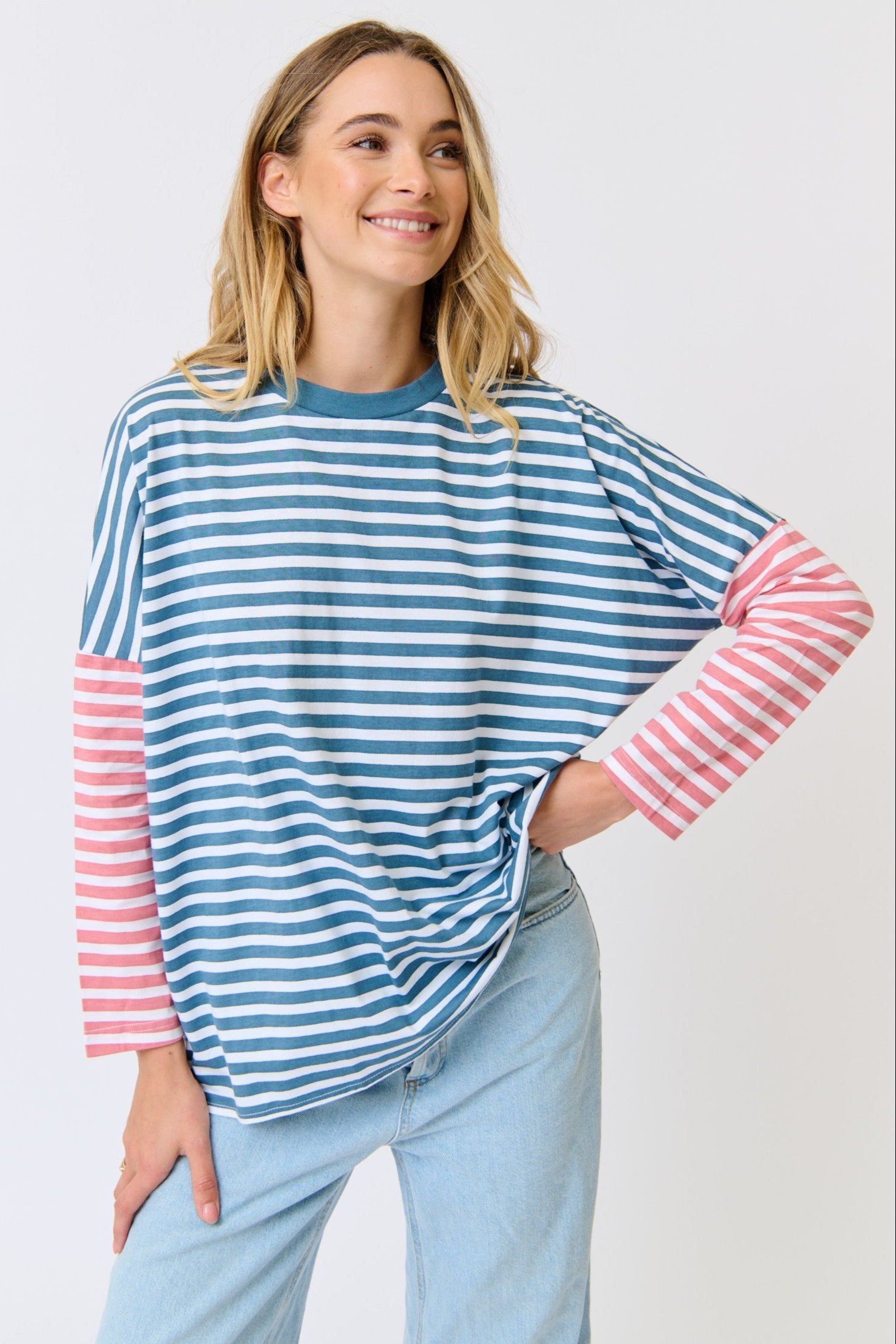 Joely Long Sleeve - Pacific / Dusty Rose Stripe
