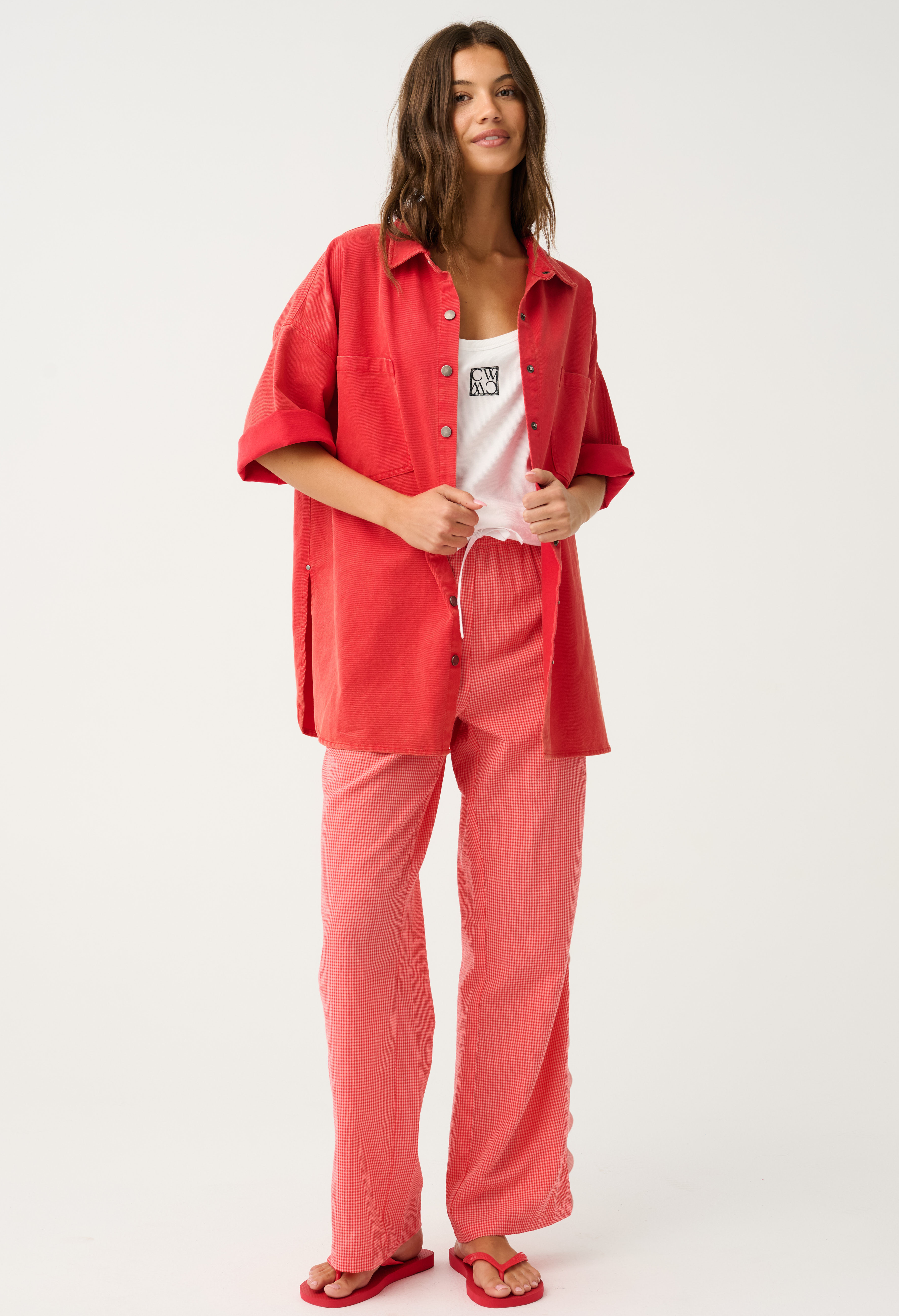 Blair Beach Pant - Coral Gingham