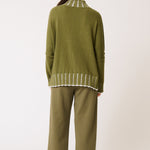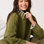 - Rib knit neckline, sleeve cuffs and hem cuff