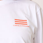 - Cartel & Willow bar logo in mandarin on the left chest