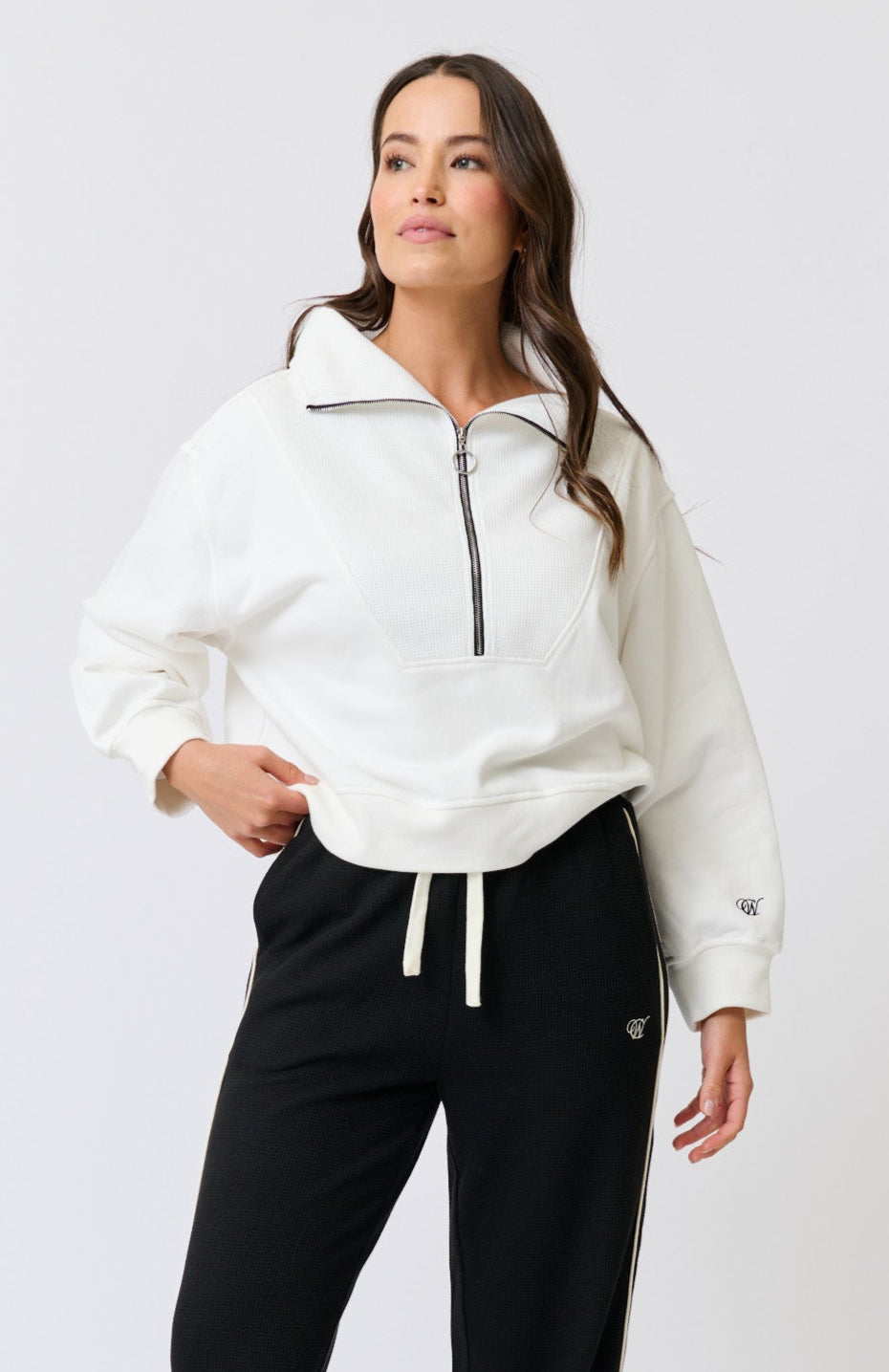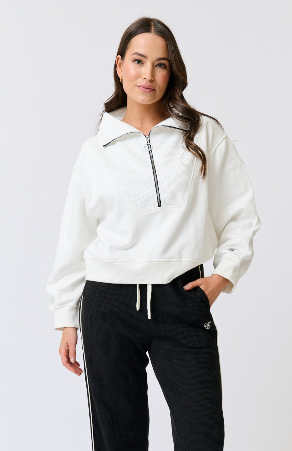 - Waffle bib panel, sleeve cuffs and hem band